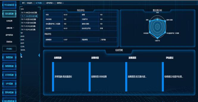 EOMS設(shè)備健康監(jiān)測(cè)系統(tǒng)能夠?qū)﹄姎庠O(shè)備維保記錄、運(yùn)行數(shù)據(jù)、電氣日常管理方面的數(shù)據(jù)進(jìn)行收集、分析、篩選。通過(guò)收集現(xiàn)有系統(tǒng)中電氣設(shè)備運(yùn)行數(shù)據(jù)、設(shè)備維保記錄、在線監(jiān)測(cè)系統(tǒng)記錄、工作記錄、檢查記錄、設(shè)備問(wèn)題或隱患等,并將所有信息與設(shè)備和平臺(tái)進(jìn)行關(guān)聯(lián),生成工作人員需要的報(bào)表內(nèi)容,并從電氣設(shè)備管理、數(shù)據(jù)標(biāo)準(zhǔn)化服務(wù)、報(bào)表數(shù)據(jù)分析等方面提升電氣設(shè)備標(biāo)準(zhǔn)化、智能化管理,具備數(shù)據(jù)分析和輔助決策能力??梢暬绞饺嬲故靖髌脚_(tái)的設(shè)備實(shí)時(shí)健康評(píng)估狀態(tài),便于全面掌握準(zhǔn)確的設(shè)備狀態(tài)進(jìn)行預(yù)測(cè)和總體分析。